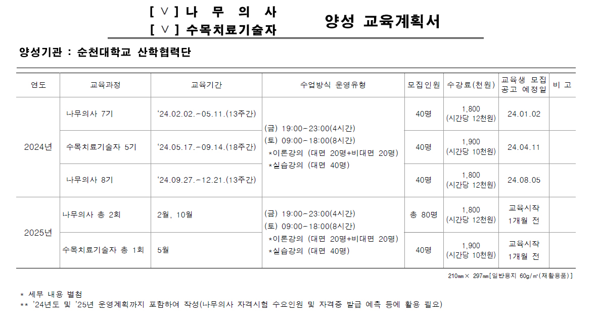전남대학교 나무의사 및 수목치료기술자 양성과정 학습자 모집 및 운영 카페