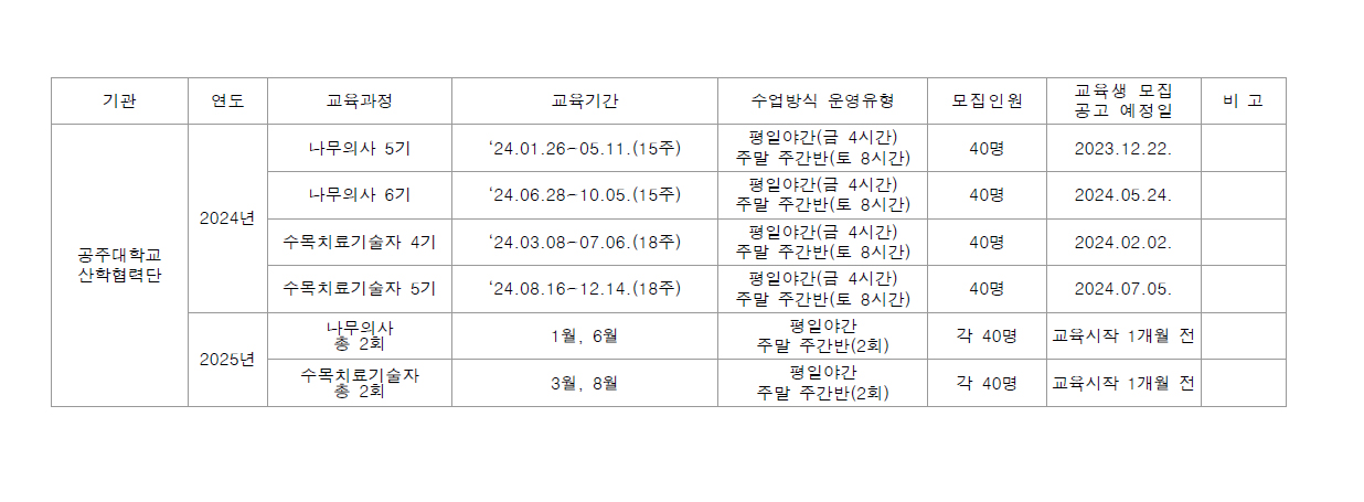 국립공주대학교 나무의사 및 수목치료기술자 양성과정