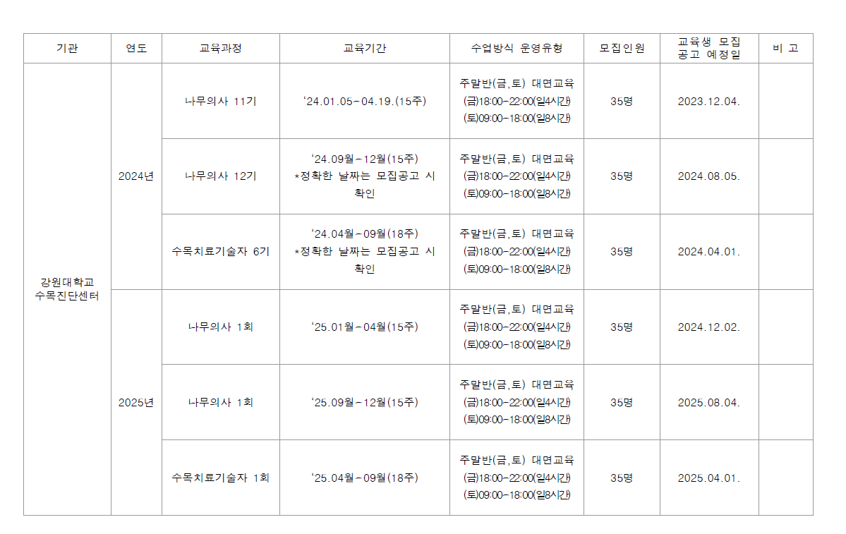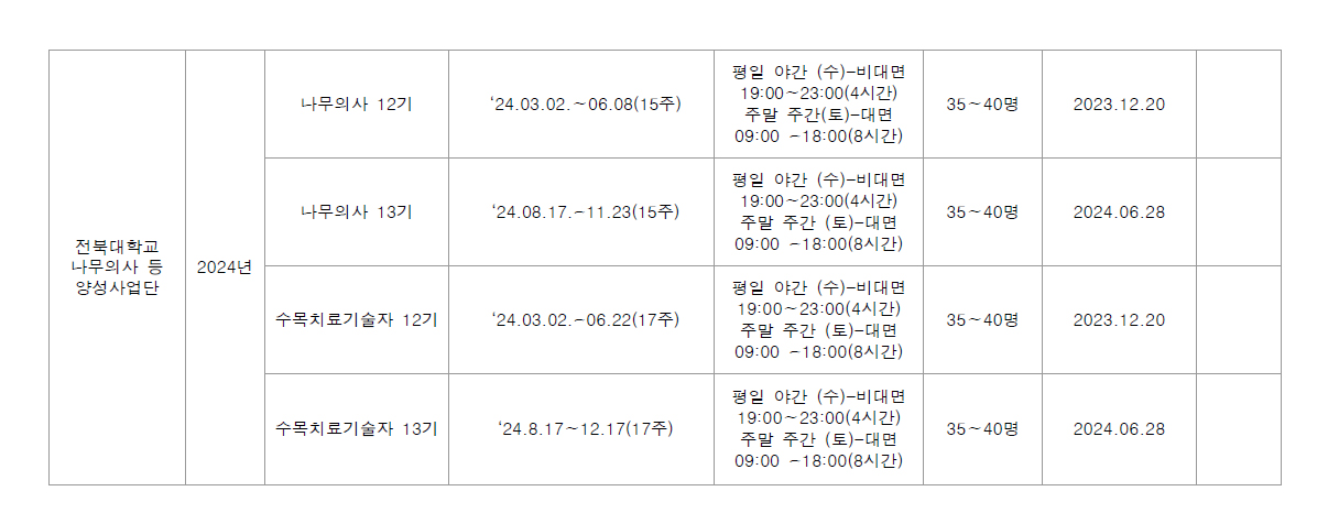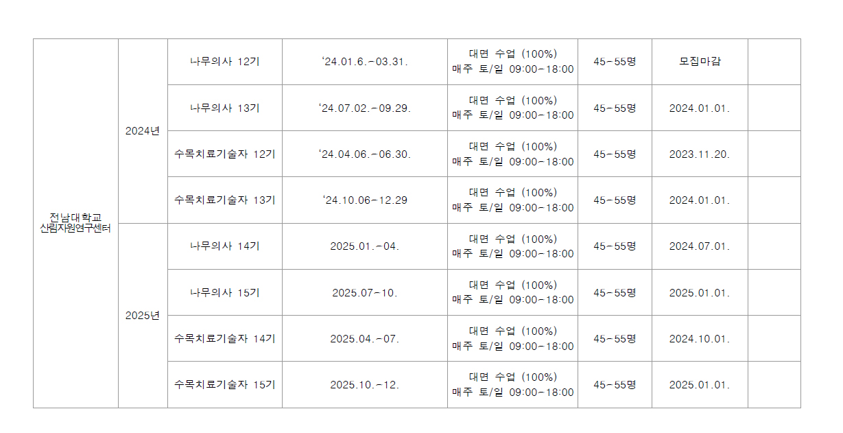 전남대학교 나무의사 및 수목치료기술자 양성과정 학습자 모집 및 운영 카페