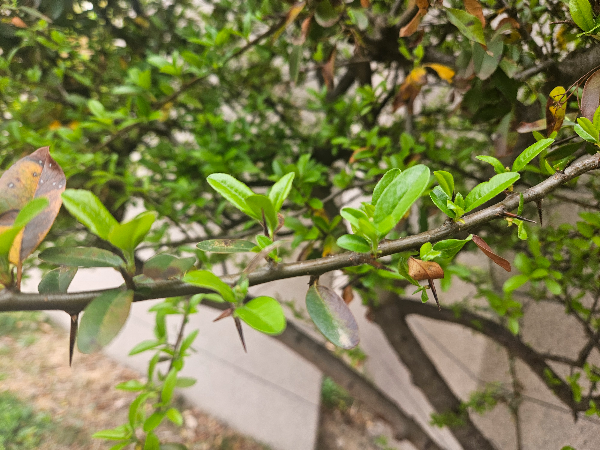 ▲ 4월 11일 좁은잎피라칸타 줄기의 가시