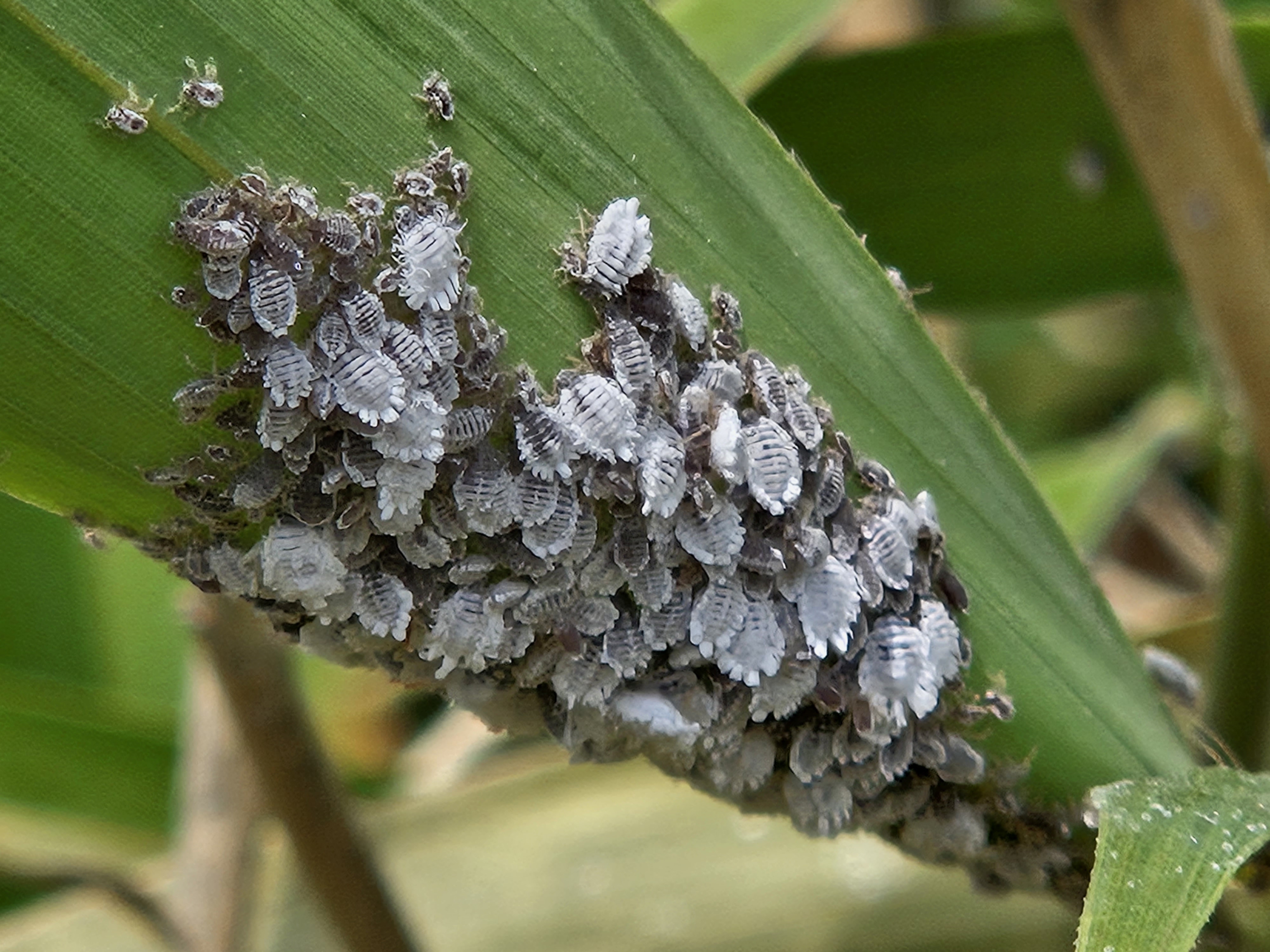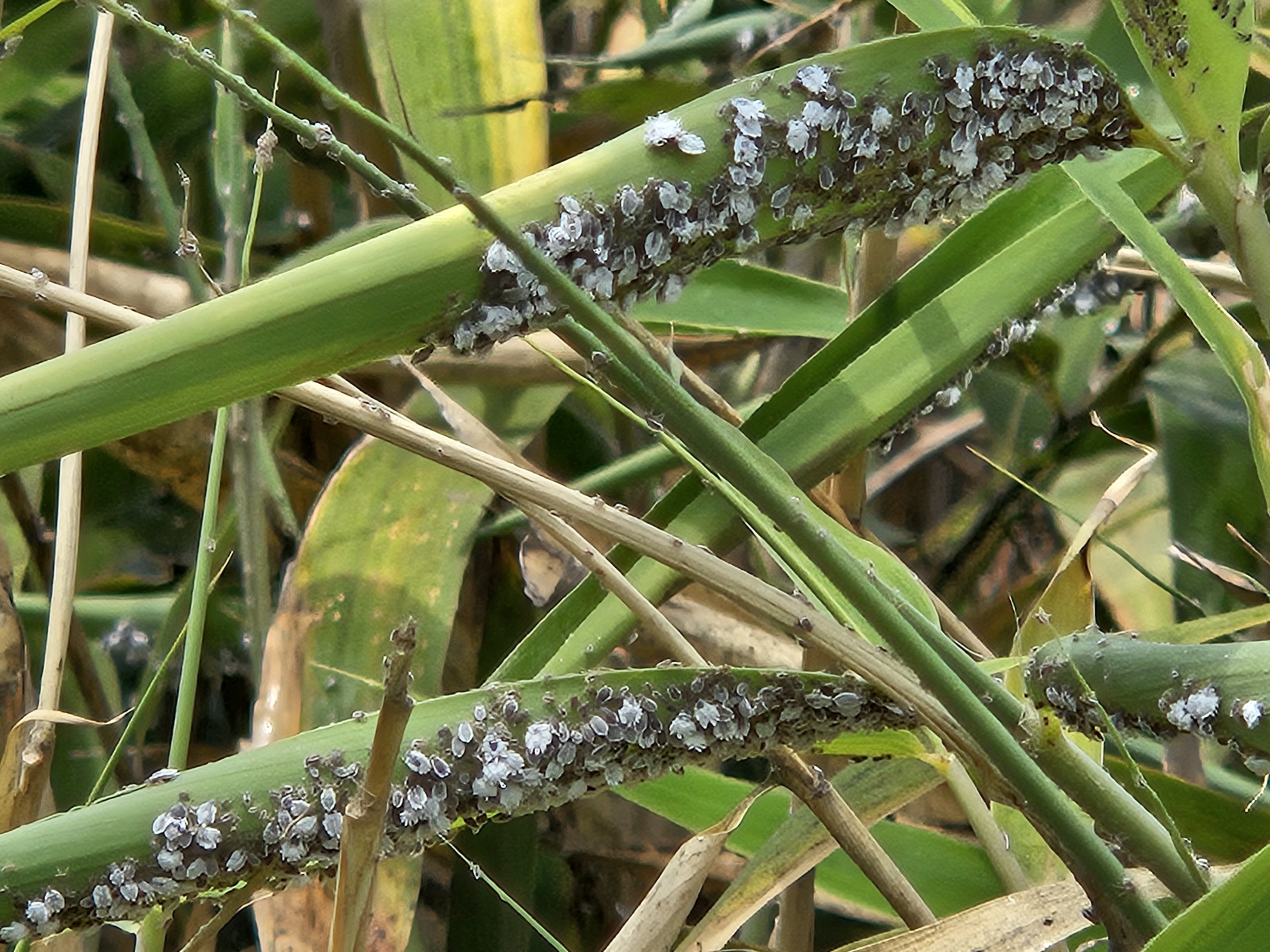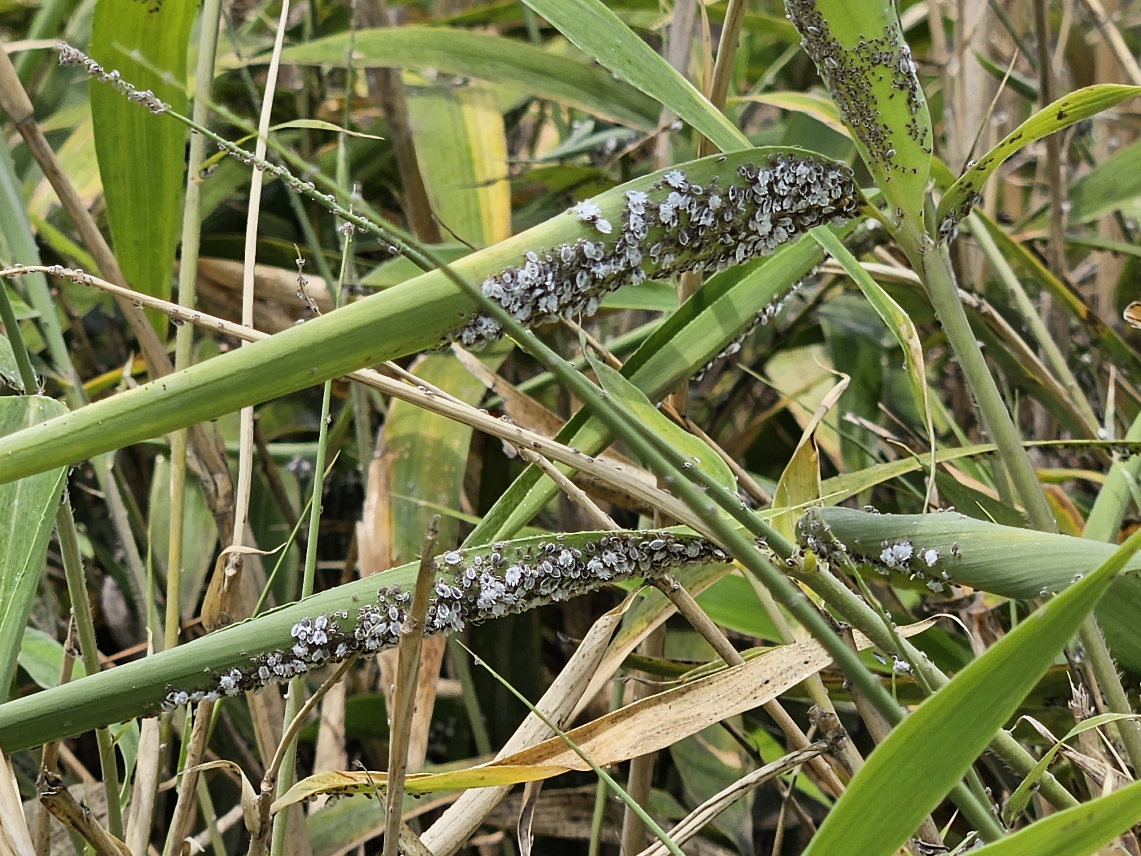 검은벼때나도 - 검은배네줄면충은 벼과, 때죽납작진딧물은 나도바랭이새
