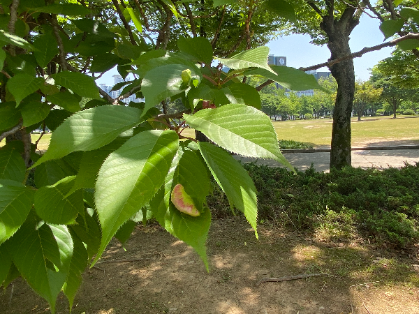사사키잎혹진딧물 벚나무 피해사진