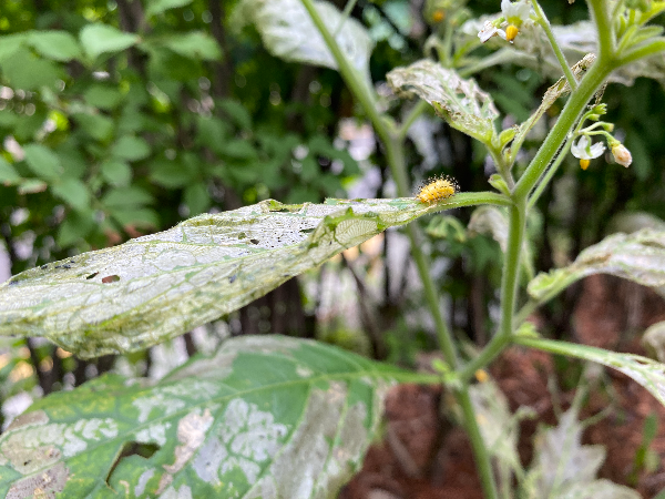 * 성충은 잎의 뒷면에 알을 낳으며, 1개씩 세워서 규칙적으로 붙여 놓는다.